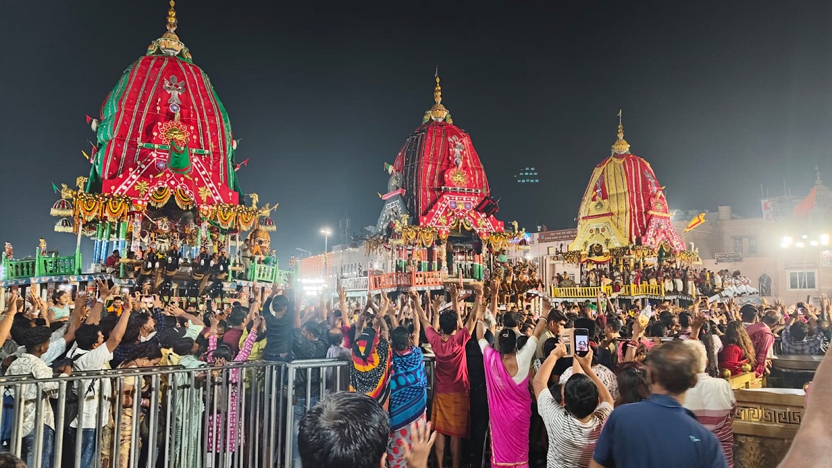 ମାଉସୀ ଘରେ ୯ ଦିନ ରହିବା ପରେ ଶ୍ରୀମନ୍ଦିର ଅଭିମୁଖେ ଯାତ୍ରା କରି ସିଂହଦ୍ଵାର ସମ୍ମୁଖରେ ପହଞ୍ଚିଛନ୍ତି ମହାପ୍ରଭୁ ଶ୍ରୀଜଗନ୍ନାଥ। ବଡ଼ ଭାଇ ବଳଭଦ୍ର, ଭଉଣୀ ସୁଭଦ୍ରାଙ୍କ ସହିତ ମହାପ୍ରଭୁ ନବଦିନାତ୍ମକ ଯାତ୍ରା ସାରି ଶ୍ରୀମନ୍ଦିର ଅଭିମୁଖେ ବାହୁଡ଼ିଛନ୍ତି।
