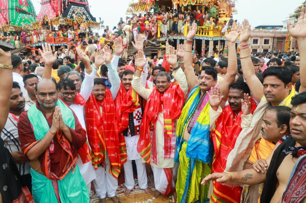ଶ୍ରୀକ୍ଷେତ୍ର ପୁରୀରେ ପବିତ୍ର ରଥଯାତ୍ରାରେ ସାମିଲ ହୋଇ କେନ୍ଦ୍ର ଶିକ୍ଷା ମନ୍ତ୍ରୀ ଧର୍ମେନ୍ଦ୍ର ପ୍ରଧାନ ଭକ୍ତମାନଙ୍କ ସହ ରଥାରୁଢ଼ ଚତୁର୍ଦ୍ଧାମୂରତିଙ୍କ ଦର୍ଶନ କରିଛନ୍ତି ।